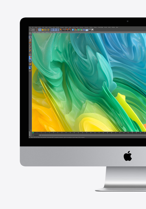 Pořádně rychlý. To je jízda. iMac a výkonný procesor patří neodmyslitelně k sobě. Až 6jádrový Intel Core i7 dává 21,5palcovému iMacu veškerý výkon, co potřebuješ na tvorbu ve Photoshopu, úpravy videí nebo dělání muziky. A ve 27palcovém modelu můžeš mít až 10jádrový Intel Core i9. Úkoly náročné na výkon jako vrstvení desítek zvukových stop nebo kompilování a testování kódu ti na něm půjdou s neuvěřitelnou lehtí.