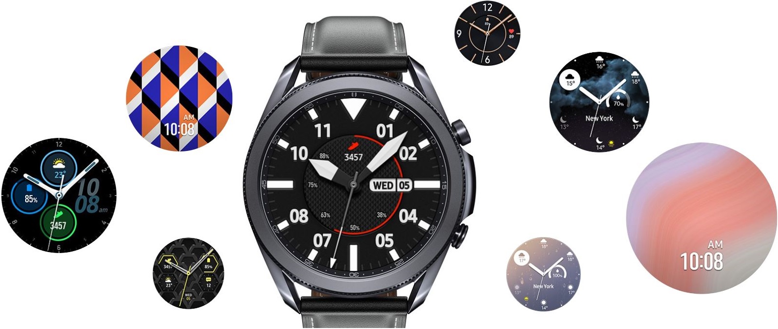 Užijte si ikonický vzhled Galaxy Watch3 s největším výběrem ciferníků, z nichž všechny ladí s elegantním tělem hodinek. Vytvořte si vlastní kombinaci s více než 40 možnostmi a vyhledávejte užitečné informace při používání svých oblíbených aplikací.