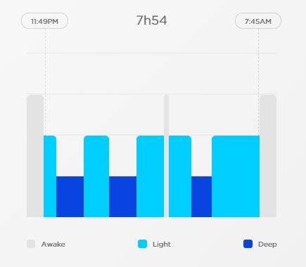 Withings ScanWatch sleduje vaše spánkové cykly (lehké a hluboké), dobu spánku, probuzení i přerušení a zaznamenává je do aplikace Health Mate, abyste si mohli prohlédnout své záznamy.