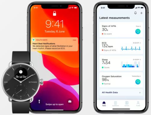 ScanWatch dokáže zaznamenat lékařský elektrokardiogram a detekovat příznaky fibrilace síní - formu arytmie, která může být zdraví škodlivá, pokud není diagnostikována. Odečty EKG lze snadno sdílet se svým lékařem prostřednictvím aplikace Health Mate, která poskytuje cenné informace, které jim pomohou sledovat zdraví vašeho srdce.