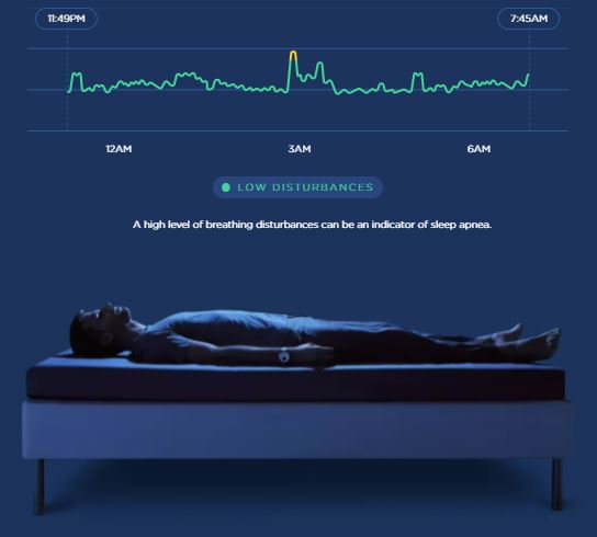Funkce Respiratory Scan sleduje nasycení kyslíkem, srdeční frekvenci, frekvenci dýchání a pohyb po celou noc. Náš exkluzivní algoritmus vyvinutý s odborníky počítá data pro měření poruch dýchání, což je indikátor spánkové apnoe.