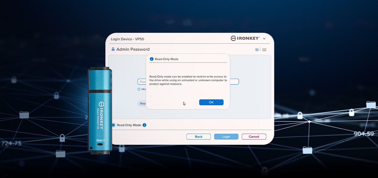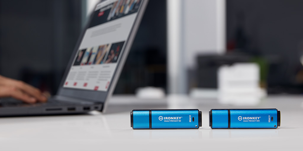Řada Kingston IronKey Vault Privacy 50 jsou prémiové disky USB typu A a USB typu C, které poskytují zabezpečení podnikové úrovně díky 256bitovému hardwarovému šifrování AES s certifikací FIPS 197 v režimu XTS, včetně ochrany proti BadUSB s digitálně podepsaným firmwarem a proti útokům hrubou silou na hesla. VP50 byl testován na průnik (pen test) pro zabezpečení podnikové úrovně. Protože poskytuje šifrované úložiště pod fyzickou kontrolou uživatele, je řada VP50 lepší než používání internetu a cloudových služeb k zabezpečení dat.