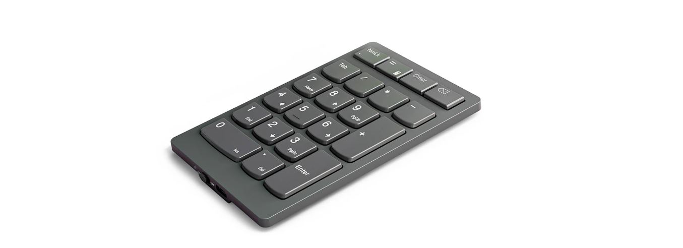 Když potřebujete zpracovat nějaká závažná čísla, někdy vám obyčejná notebooková klávesnice prostě nestačí. Tehdy přichází na řadu bezdrátová numerická klávesnice Lenovo Go. Tato na dotek příjemná a citlivá klávesnice s 21 klávesami se může pochlubit prvotřídními klávesami s nůžkovým přepínačem, dobíjecí baterií s dlouhou výdrží a výkonným 2,4GHz bezdrátovým připojením. Je také velmi kompaktní, takže si ji můžete vzít kamkoli s sebou.