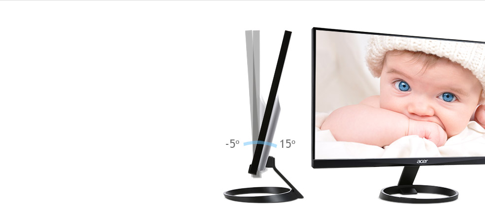 Díky technologii Acer Flicker-less můžete dát sbohem nepříjemnému blikání obrazovky a filtr modrého světla vás ochrání před nežádoucím modrým světlem způsobujícím únavu očí. Technologie Acer ComfyView navíc redukuje nepříjemné odrazy pozadí na minimum. Obrazovka těchto monitorů také může být sklopena v rozmezí -5° až 15° pro dosažení ideálního pozorovacího úhlu.
