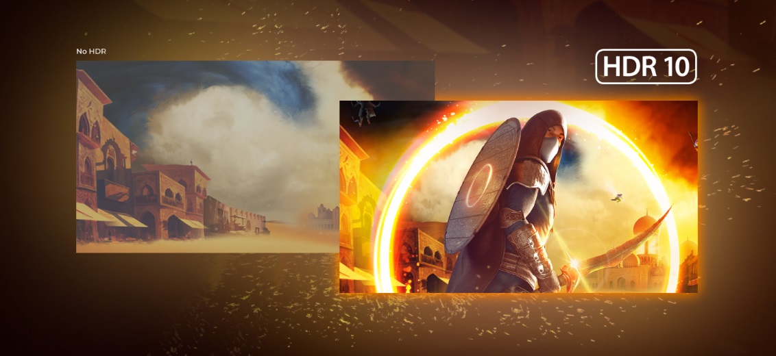 HDR10 je tu, aby ještě více zlepšilo kvalitu obrazu a zlepšilo synchronizaci grafického procesoru nebo konzole s monitorem. To vytváří realističtější, pohlcující a plynulejší herní zážitek: Budete mít pocit, že vstupujete do hry, snímek po snímku.