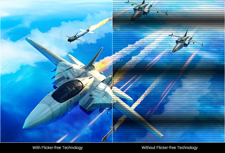 VG27VQ je vybaven nejnovější technologií ASUS Extreme Low Motion Blur, která dosahuje 1ms MPRT, aby eliminovala rozmazání a trhání pohybu, a aby objekty v pohybu vypadaly ostřejší, takže hraní je plynulejší a citlivější.