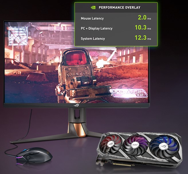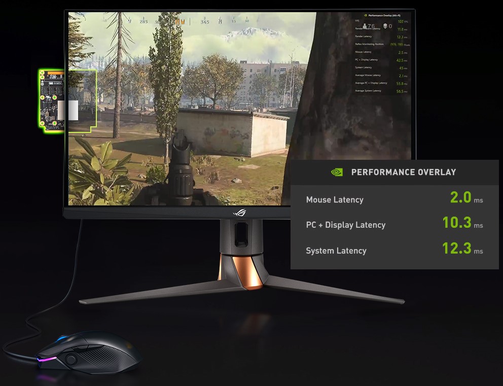 Výkon počítače pro kompetitivní hraní je o rychlosti odezvy - jak rychle se displej aktualizuje po kliknutí myší. Analyzátor latence NVIDIA Reflex Latency Analyzer, zabudovaný do PG279QM, zachycuje latenci systému od konce ke konci a poskytuje přesné měření výkonu vašeho počítače. Vykročte s jistotou do bitvy s vědomím, že váš počítač je díky grafickým procesorům GeForce RTX a PG279QM a jádru Charkram výkonný na špičkové úrovni.