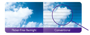 Technologie Flicker-free eliminuje blikání při všech úrovních jasu a účinným způsobem snižuje únavu očí. Běžné LCD obrazovky blikají rychlostí 200x za sekundu. Vaše oči nemusí blikání vidět, ale rozhodně ho cítí. Ulevte svým očím od blikání přechodem na monitory s technologií Flicker-free a nechte je méně se namáhat.