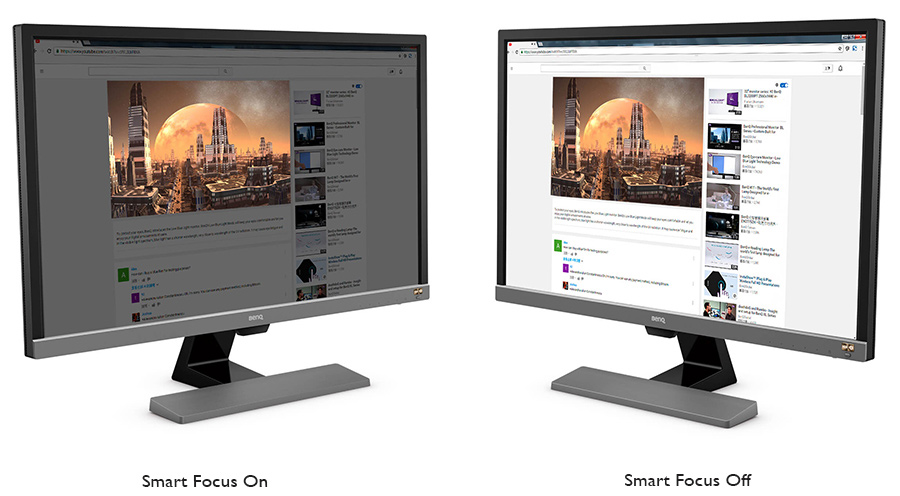 EL2870U nabízí technologii HDR spolu s technologií Brightness Intelligence Plus (B.I.+), která jemně změkčuje světlé oblasti a současně zachovává tmavé detaily křišťálově ostré. Pomocí praktického funkčního tlačítka monitoru EL2870U lze přepínat mezi 4 úrovněmi režimů HDR a B.I.+ za účelem vyvážení maximálního kontrastu a živosti barev. Výsledkem je dosažení úžasného obrazového výkonu u obsahu HDR a současné zachování vysokého pohodlí při sledování.