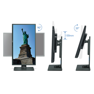 Přizpůsobte si svoji pracovní stanici a vytvořte si dokonalé uživatelské prostředí díky širokým možnostem nastavení monitoru – výšky, naklonění, otočení na výšku, zdvihu a natočení. Používáte-li displej ve svislé orientaci, chytrý snímač orientace obrazovky monitoru automaticky otočí její obsah, takže si budete moci vychutnat prohlížení obrázků v jejich plném kontextu.