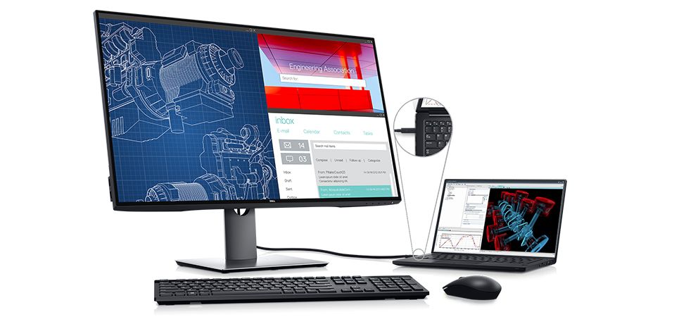 Jednoduchá správa: Na monitoru můžete díky pohodlné funkci KVM (klávesnice, video a myš) přepínat mezi aplikacemi ze dvou počítačů a pracovat s obsahem pomocí jediné klávesnice a myši.