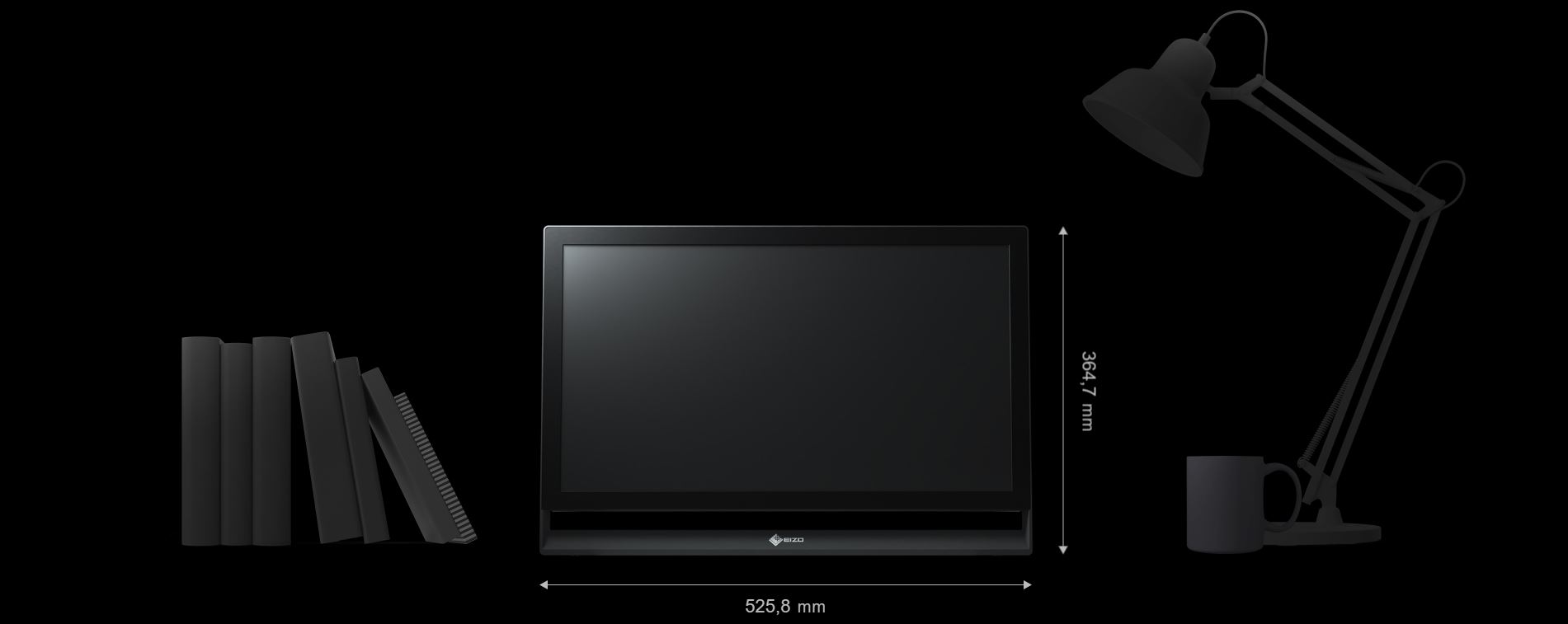 Rozměry (se stojanem,Landscape, ŠxVxH mm): 525.8 x 318.5 - 358.5 x 139.7 - 285.0