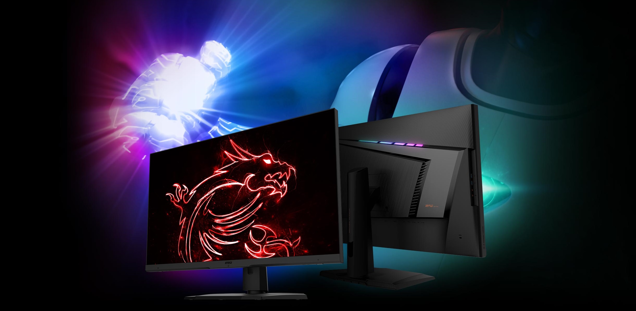 Monitor je v zadní části vybaven RGB ambientním osvětlením, které si lze prostřednictvím vašeho telefonu nebo aplikace MSI Mystic Light nastavit tak, aby svítilo synchronizovaně v mnoha barvách a stylech s dalším příslušenstvím podporující funkci Mystic Light.