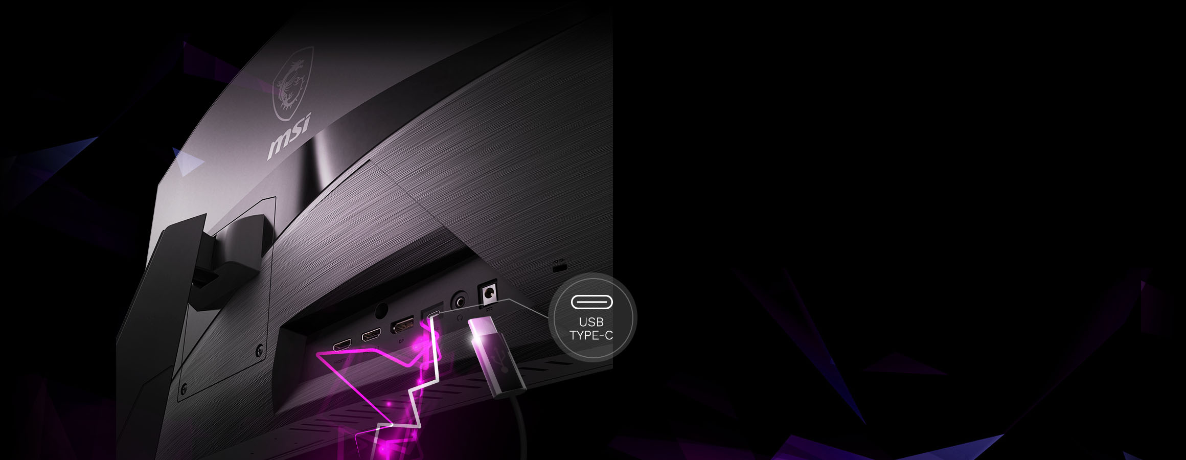 Herní monitor MSI podporuje připojení USB typu C, které vám umožní napájet vaše zařízení (až 15 W), bez problémů se připojit k jakémukoli kompatibilnímu zařízení pro přenos dat a funguje také jako alternativa DisplayPortu.