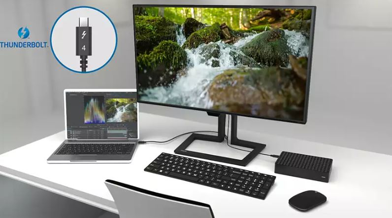 Tento dokovací monitor Philips je vybaven připojením Thunderbolt™ 4. V porovnání s konvenčními monitory s USB-C poskytuje Thunderbolt™ 4 bleskově rychlý přenos dat (40 Gb/s), podporuje video ve vysokém rozlišení, nabízí přenos více streamů pro řetězení, 90W napájení pro externí zařízení a poskytuje stabilní ethernetové připojení o rychlosti 1 Gb/s.
