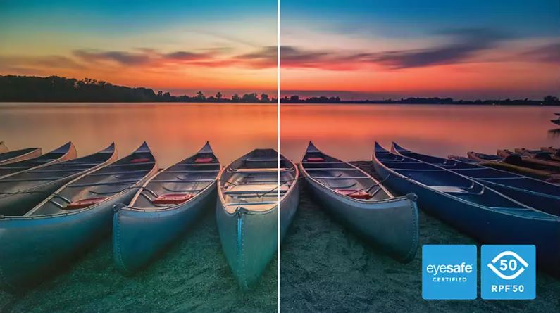 Displej Philips splňuje standard TUV Rheinland Eyesafe® a plně vás tak chrání před dlouhým vystavením modrému světlu. Vždy zapnutý filtr modrého světla pomáhá předejít únavě očí z digitálních obrazovek, ale také garantuje přesnost barev.