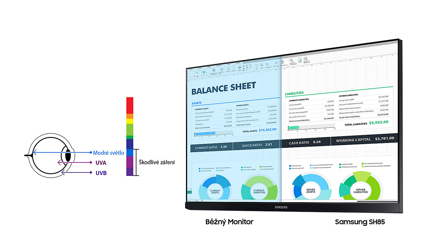 SH85 je perfektní volbou pro profesionální použití. Nabízí všechny výhody prémiového displeje s PLS technologií, ze tří stran není omezen rámečkem a poskytuje 1,7krát vyšší hustotu pixelů oproti Full HD monitorům. Výsledkem je tak zcela čistý obraz, vysoká čitelnost textu, přesné podání barev a konstantní kvalita obrazu z různých pozorovacích úhlů.