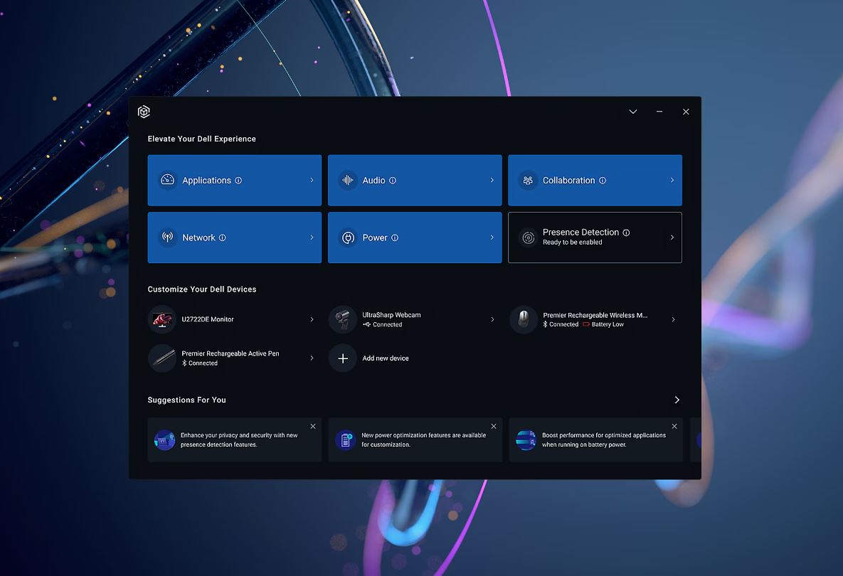 Inteligence postavená kolem vás: Automaticky přizpůsobte a zvyšte výkon svého systému a celého jeho eystému pomocí Dell Optimizer, optimalizačního softwaru založeného na umělé inteligenci, který se učí a reaguje na způsob vaší práce.