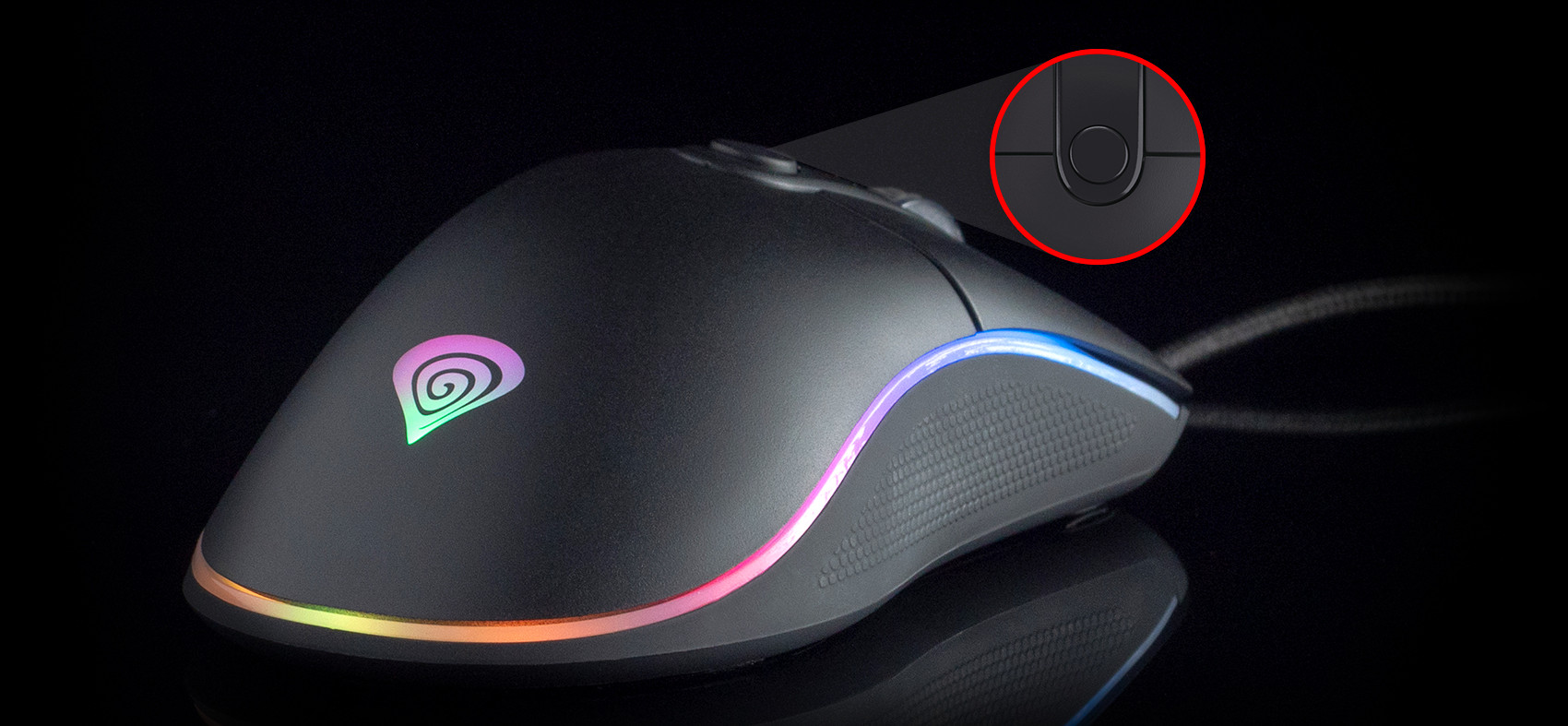 makra a přiřazování různých funkcí. Ergonomický tvare a RGB podsvícení s možností nastavení 16 milionů barev.