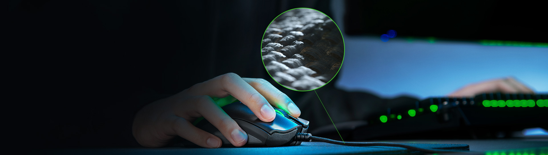 Kabel Razer DeathAdder V2 má větší flexibilitu a je navržen tak, aby produkoval minimální odpor, takže můžete provádět rychlejší a plynulejší švihnutí pro vyšší stupeň kontroly.
