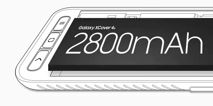Pro váš maximální požitek je smartphone vybaven výkonem, který umožňuje ještě delší dobu používání. Galaxy XCover 4s je vybaven 2 800mAh baterií, která zajistí, že budete mít dostatek energie pro vaši práci či streamování bez přerušení.