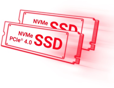 Hry a aplikace se na svižném SSD NVM Express® (NVMe®) disku načítají rychleji než dříve. Bleskové načítání všech programů znamená, že můžete trávit méně času čekáním a více času hraním. Vezměte si své nepostradatelné herní tituly na cesty s až 2TB PCIe® úložištěm nebo přidejte druhý disk prostřednictvím otevřeného slotu M.2 SSD, a získejte tak sbírku o veliti několika terabajtů.