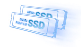 Hry a aplikace se na svižném SSD disku NVM Express® (NVMe®) načítají rychleji než kdykoli předtím. Bleskové načítání všech programů znamená, že můžete trávit méně času čekáním a více času hraním. Vezměte si své oblíbené hry na cesty s až 1TB diskem PCIe®, nebo přidejte druhý disk prostřednictvím otevřeného slotu M.2 SSD, a získejte tak sbírku o veliti několika terabajtů.