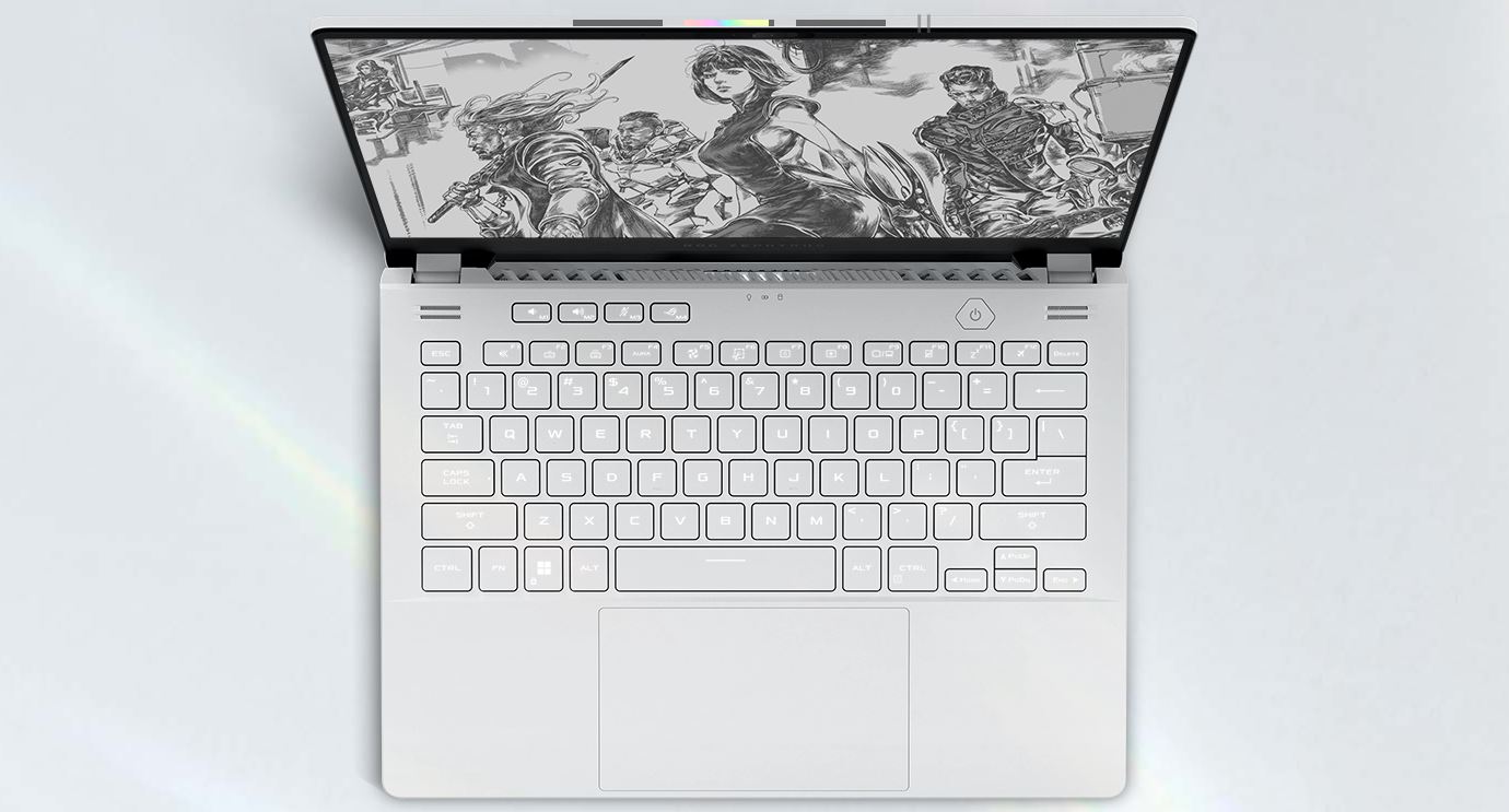 Notebook 2023 Zephyrus G14 je charakteristický rozložením klávesnice inspirovaným desktopovými klávesnicemi, které odpovídá většímu displeji s poměrem stran 16:10. Technologie Overstroke se spouští při každém stisku klávesy výše a stará se o rychlejší odezvu. Konstrukce ErgoLift zvedá klávesnici do úhlu, ve kterém je psaní pohodlnější. Tlačítka pro regulaci hlasitosti, ztlumení mikrofonu a klávesové zkratky ROG Armoury Crate máte na dosah. Klávesové zkratky jsou také plně přizpůsobitelné a lze je naprogramovat za účelem spouštění aplikací, nastavit jako funkční klávesy nebo použít jako makra.