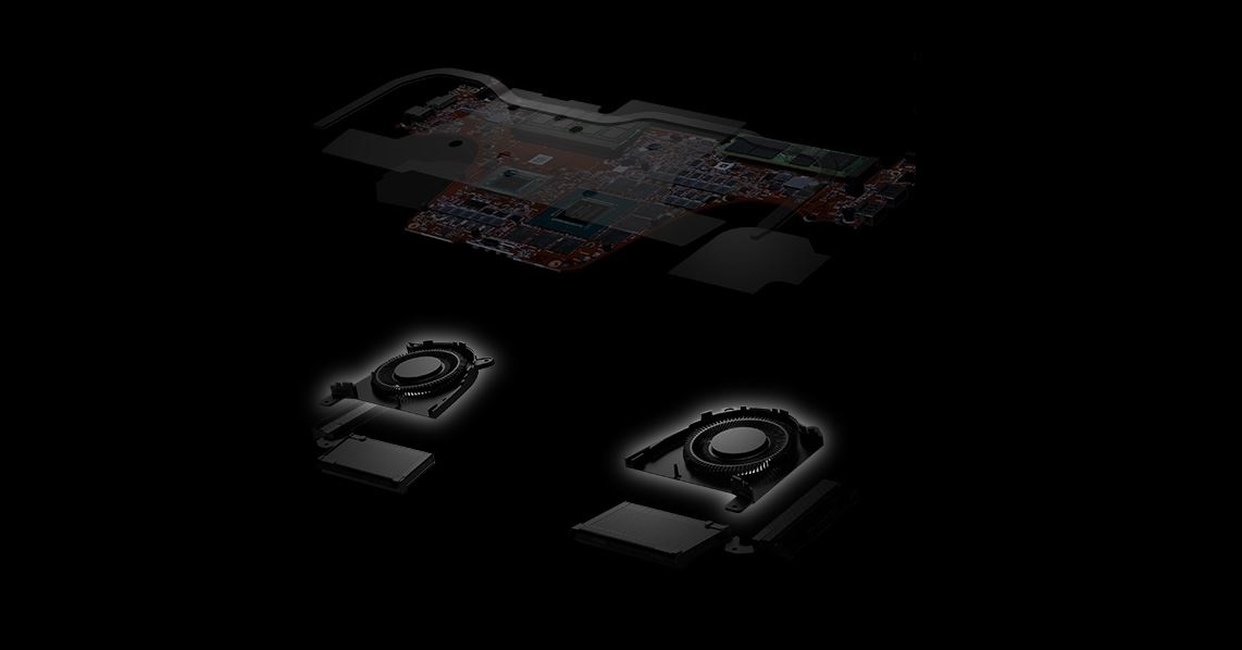 Výkonný hardware vyžaduje robustní chlazení, tím více v kompaktním šasi. Zephyrus G14 je vybaven odpařovací komorou pro procesor a grafickou kartu s chladicí směsí Thermal Grizzly z tekutého kovu pro mimořádně účinný odvod tepla z nejžhavějších částí počítače. S pokrytím 48,2 % komponent generujících teplo umožňuje odpařovací komora modelu G14 dosáhnout o 25 W vyššího energetického potenciálu a posunout výkon na hranici možností, aniž by se zvýšila hlučnost ventilátorů nebo velit šasi. V tichém provozním režimu během nenáročných úloh umožňuje 0dB technologie automatické vypnutí ventilátorů, což přináší skutečně tiché chlazení.