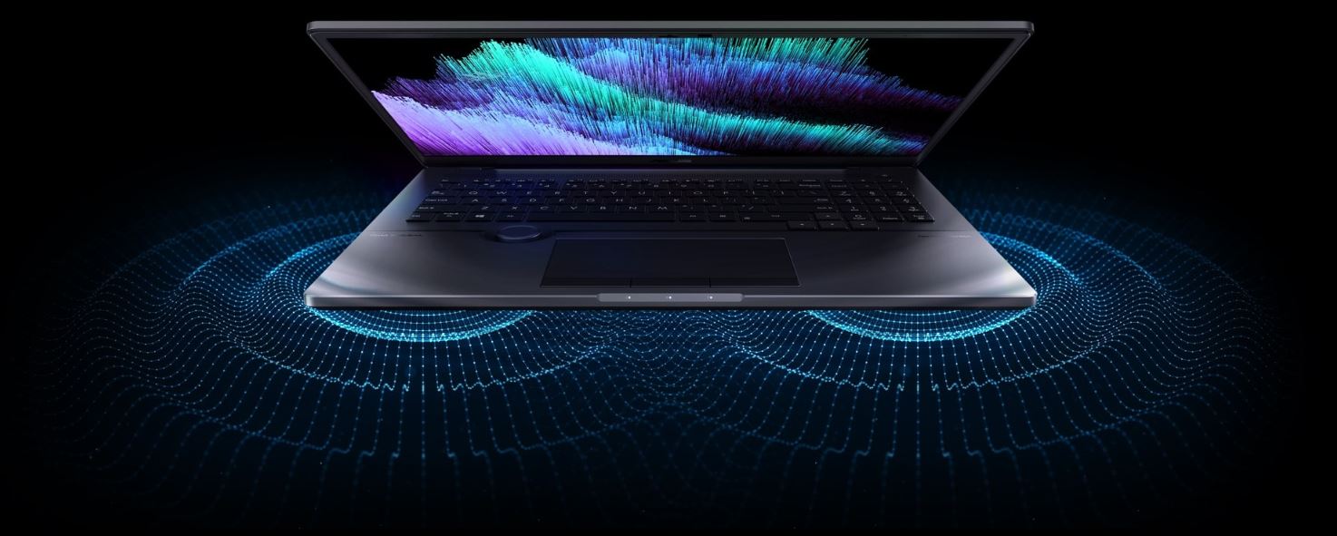 Udržovat výkonný notebook, jako je ProArt Studiobook 16 OLED, v chladu, je pro špičkový výkon nezbytné, nicméně nežádoucí hluk bývá nepřítelem kreativity. Chladicí systém ASUS IceCool Pro jsme proto navrhli tak, aby umožnil výkonnému AMD procesoru pohodlně pracovat při celkovém TDP 140 W (50 W CPU a 90 W GPU) v režimu Performance, tedy bez přiškrcení. Tento pozoruhodný technický počin využívá dva ventilátory se 102 lopatkami, které jako první na světě používají více než 100 lopatek. Tenké lopatky aerofoil jsou vyrobeny z epoxidového polymeru s tekutými krystaly s bočním řetězcem (SCP): tichý, energeticky účinný 3D zakřivený design zvyšuje průtok vzduchu o 16 %. Šest tepelných trubic a sedm inteligentních senzorů zajišťuje optimální chladicí výkon, přičemž vše zůstává tiché – pod 40 dBA v režimu Normal – takže se můžete maximálně soustředit na práci bez rušivých vlivů. Vedle toho je ProArt Studiobook 16 OLED vybaven režimem WhisperMode 2.0 s umělou inteligencí od společnosti NVIDIA, který vám dává ještě větší kontrolu nad ventilátory notebooku, takže můžete vyvážit výkon a akustiku.