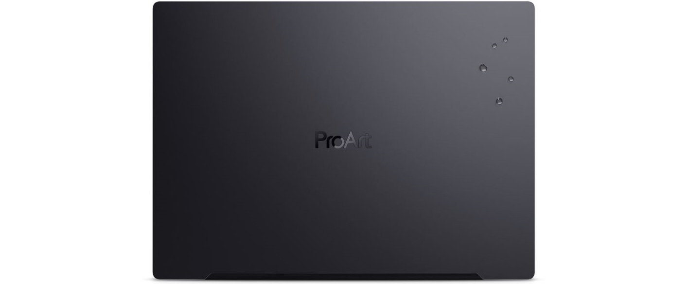 Špičková nanopovrchová úprava proti otiskům prstů zachovává čistý a minimalistický matný povrch notebooku ProArt Studiobook 16 OLED v barvě Star Black. Tato povrchová úprava je nejen pevná a odolná, ale také snižuje reflexivitu a dodává notebooku prvotřídní hedvábný vzhled. Případnou vodu na povrchu lze jednoduše setřít díky voděodpudivým vlastnostem schvrchní vrstvy.
