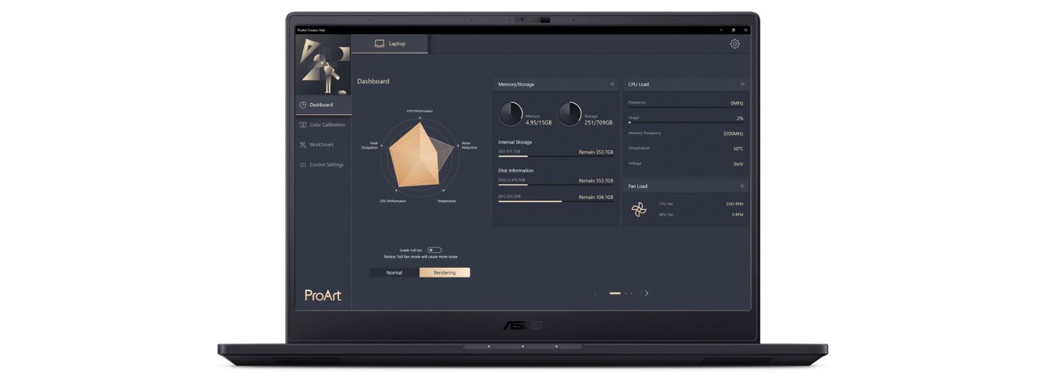 ProArt Creator Hub obsahuje přehledný panel a umožňuje přepínat do různých režimů výkonu, kalibrovat barvu obrazovky nebo přizpůsobit ovladač ASUS Dial. Je to osobní portál, kde můžete sledovat stav notebooku, přizpůsobit nastavení nebo optimalizovat pracovní postupy. Můžete si také přizpůsobit ovladač ASUS Dial pro své preferované funkce nebo nastavit klávesové zkratky v Nastavení ovládání pro nekonečnou kreativitu.