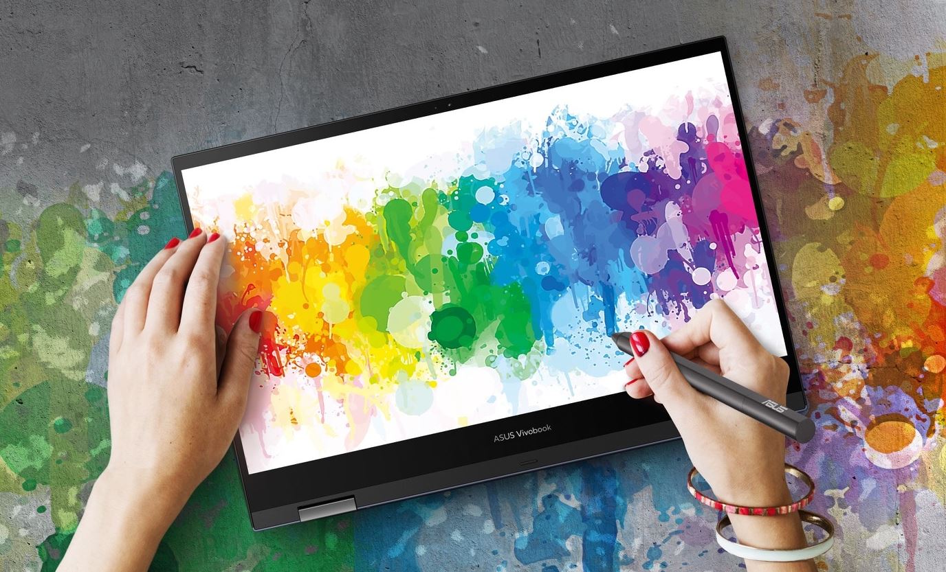 Dali jsme Vivobook Go 14 Flip působivou dotykovou obrazovku NanoEdge FHD s tenkým rámečkem: díky tomu získáte větší displej a menší rámeček pro pohlcující zážitek ze sledování. Široké pozorovací úhly a vynikající reprodukce barev dělají radost ze sledování a má také certifikaci TÜV Rheinland pro nízkou úroveň modrého světla, takže je pro vaše oči příjemnější, a to i při sledování maratonu!