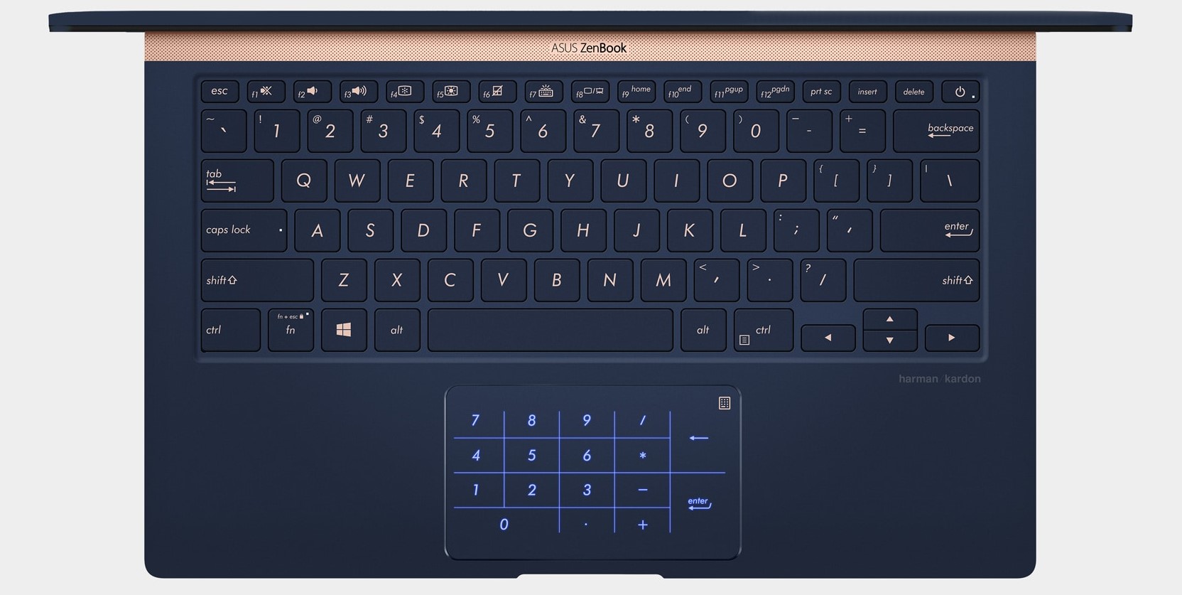 Pro snadnou produktivitu během vašich cest je ZenBook 14 vybaven plnohodnotnou podsvícenou klávesnicí, která poskytuje při psaní vynikající pohodlí. Je to mistrovské ergonomické dílo se správným zdvihem kláves. Pant ErgoLift zajišťuje, že je vždy nakloněn v ideálním úhlu pro dokonalý komfort. ZenBook 14 také představuje exkluzivní nový nástroj NumberPad, což je touchpad s přepínatelnou numerickou klávesnicí pro rychlé zadávání dat.