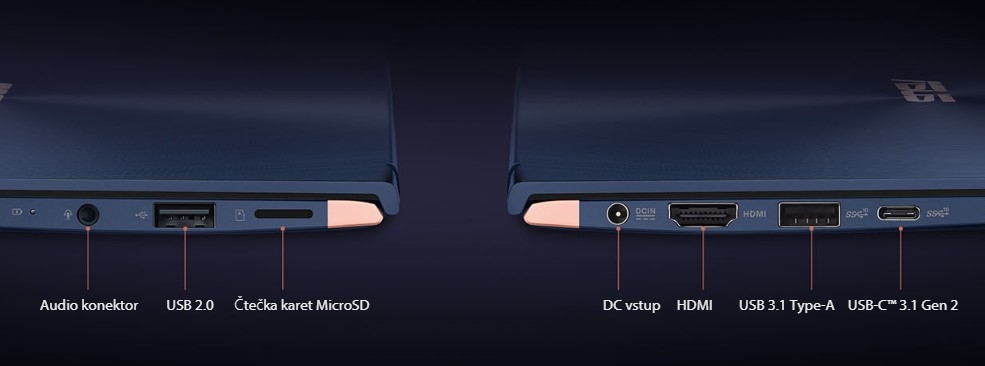 Když pracujete během svých cest, je důležité, abyste měli široké možnosti konektivity. ZenBook 14 je vybaven revolučním rozhraním USB-C™ pro snadné připojení a super rychlé přenosy dat pomocí USB 3.1 Gen 2. Také zde najdete port USB 3.1 Type-A, port USB 2.0, port HDMI a čtečku karet microSD, takže je snadné se připojit ke všem současným i budoucím periferiím.