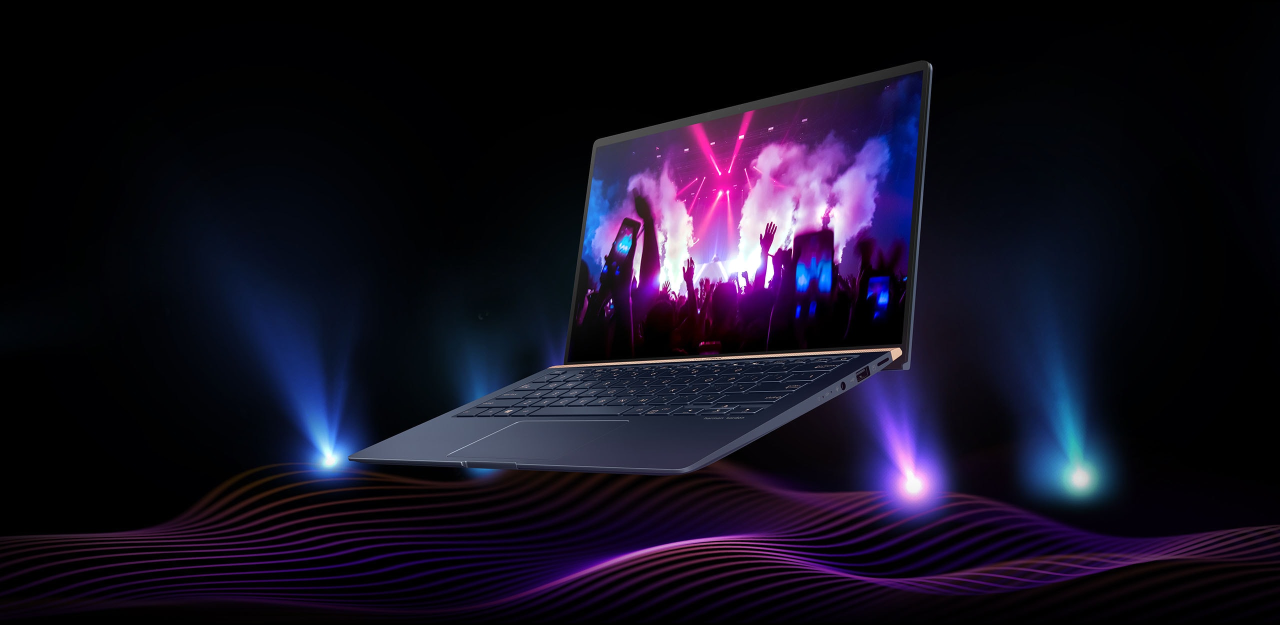 Pro vytvoření nové generace zvukové technologie ASUS SonicMaster spolupracoval tým ASUS Golden Ear s renomovanými odborníky na zvukové technologie pro domácnosti i automobily ze společnosti Harman Kardon. Výsledky předčí vaše očekávání. Na míru šitá kombinace vynikajícího hardwaru, včetně inteligentní zesilovací technologie, která přináší hlasitější zvuk bez deformace, a šikovně navržený software zajišťují, že ZenBook 14 vám poskytne dokonalý zvukový zážitek.