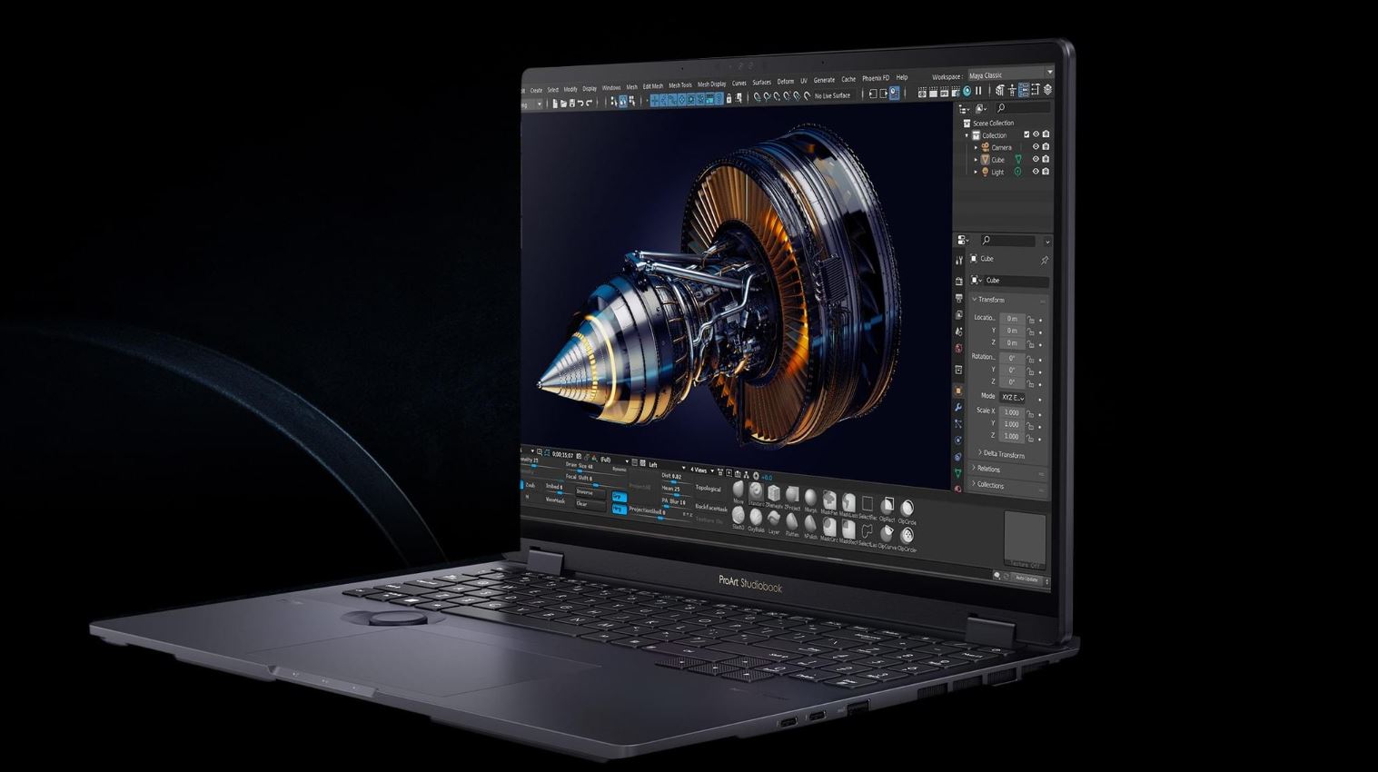 Výkon je atributem notebooku ProArt Studiobook Pro 16 OLED, který nabízí možnosti tvorby obsahu na úrovni desktopu v kompaktním provedení, které si můžete vzít kamkoli s sebou. Procesor Intel Core i9-13980HX 13. generace si hravě poradí s náročnou výpočetní zátěží a spolupracuje s profesionální grafikou NVIDIA RTX™ 3000 Ada Generation pro notebooky, dvěma nejmodernějšími a nejrychlejšími SSD a až 64 GB vysoce výkonné paměti RAM. Konečně je tu mobilní pracovní stanice, která si své jméno skutečně zaslouží.