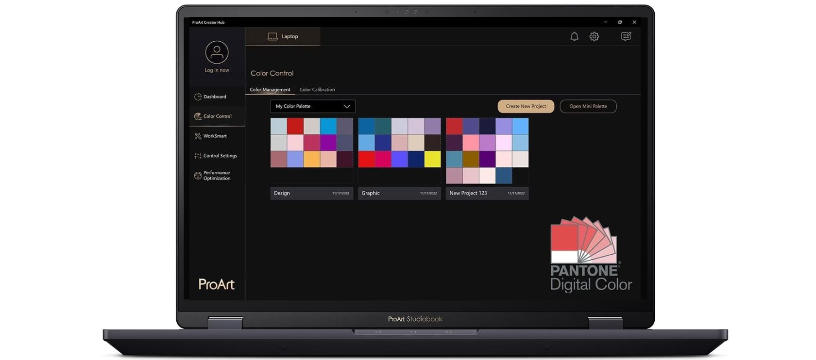 ProArt Creator Hub je osobní portál, kde můžete sledovat stav vašeho zařízení, přizpůsobit si nastavení nebo optimalizovat pracovní postupy podpořit tak svou nekonečnou kreativitu. Nabízí přehledný ovládací panel, profily ventilátorů pro přizpůsobení chladicího výkonu a nastavení ovládání pro personalizaci kreativních komponent ASUS. K dispozici je také nová funkce Color Control, která vám pomůže optimalizovat barevné nástroje: spolupracovali jsme se společností Pantone®, abychom vám poskytli digitální barevná data, která vám pomohou vyjádřit vaši nespoutanou kreativitu.