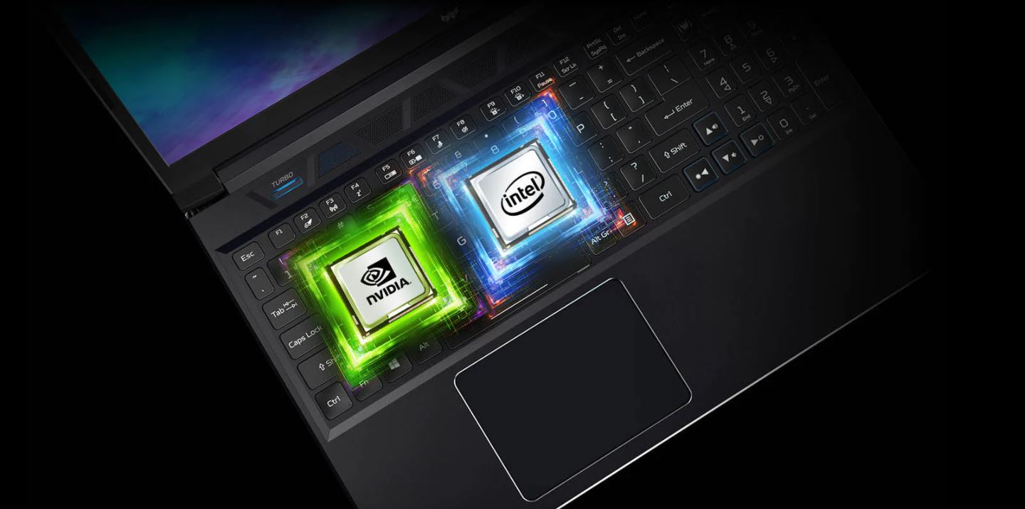 V základně tohoto černého, kovového stroje se nachází zónová klávesnice RGB s průhlednými konkávními klávesami WASD a dvěma integrálními klávesami pro Turbo a PredatorSense™. Po klepnutí na Turbo dojde k okamžitému přetaktování. Obslužnou aplikaci otevřete klepnutím na PredatorSense™.