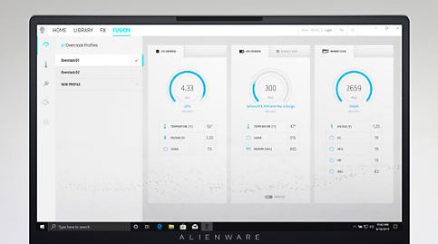 Přizpůsobte počítač svým potřebám pomocí jednoho z pěti jedinečných stavů napájení, dostupných prostřednictvím nástroje Alienware Command Center. Zvolte režim Výkon, Rovnováha, Úspora baterie, Ticho a Plná rychlost, které lze rovněž přepínat pomocí klávesové zkratky Fn+F1.