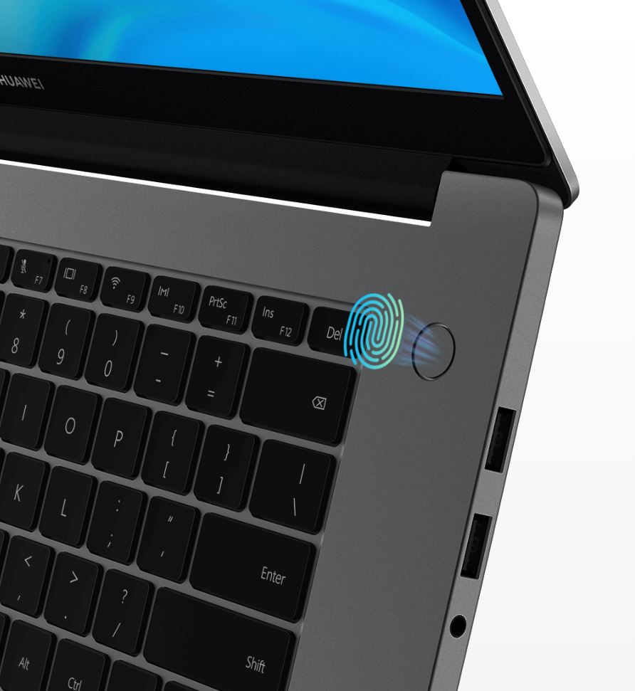 Tvůj prst je tvoje propustka pro plný přístup k HUAWEI MateBook D 15. Stiskni tlačítko napájení (které je zároveň i tlačítkem otisku prstu) v pravém horním rohu klávesnice. To přečte tvůj originální otisk, zapne se a okamžitě tě přihlásí.