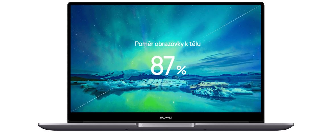 Vyzkoušej novou vizi s HUAWEI MateBook D 15. Displej HUAWEI FullView s úhlopříčkou IPS 15,6” a poměrem stran 16:9 rozšiřuje hranice toho, co můžeš vidět, zatímco rozlišení Full HD 1920 x 1080 umožňuje, aby každý obraz byl plný detailů a jasný. Otevři a uvidíš víc.