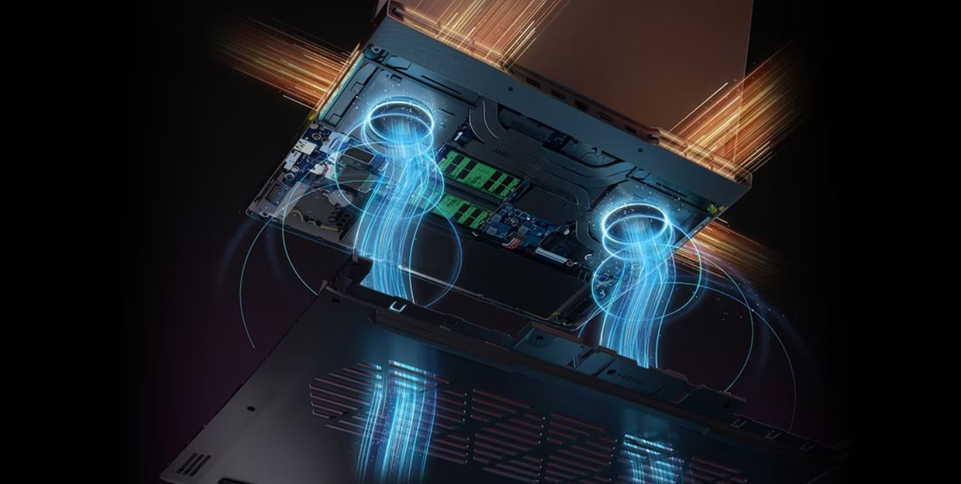 Chcete ohromující výkon, ale potřebujete zůstat tišší? Pokročilý chladící design Lenovo LOQ zajišťuje tiché chlazení díky až čtyřem chladícím trubicím, dvěma 85mm 12V vysokorychlostním ventilátorům a velkým otvorům pro přívod a odvod vzduchu. Objemné odvětrávání zajišťuje neustálé proudění vzduchu klávesnicí a vývody na zadní a boční straně notebooku. S TDP až 135 W můžete hrát sebevědomě, protože budete mít jistotu, že se váš notebook nepřehřeje a nevydává hluk, takže můžete hrát naplno.