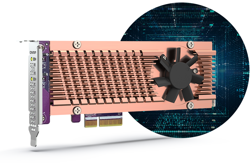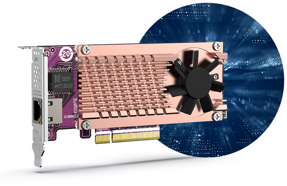 *Nainstalujte kartu PCIe Gen3 x2 a rozšiřte základní funkce zařízení TS-464, včetně síťové karty Multi-Gig 10GbE/5GbE/2,5GbE, karty QM2 nebo karty USB 3.2 Gen 2 (10Gb/s).