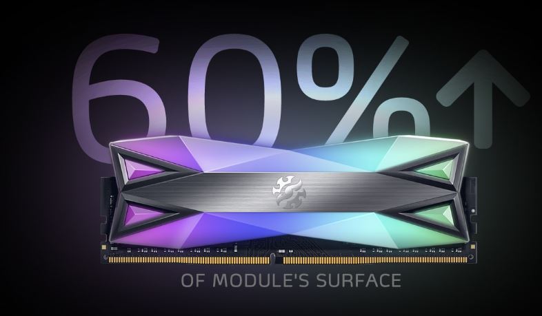 Paměť D60G nabízí více RGB osvětlení na mm2 než jakýkoli jiný paměťový modul, konkrétně 9 497mm2. To odpovídá více než 60 % plochy povrchu modulu.