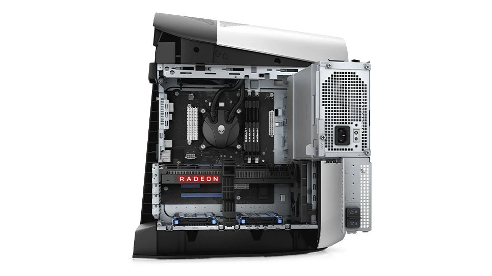 Ještě více výkonu: Stolní počítač Alienware Aurora Ryzen Edition je navržen tak, aby plně podporoval vlastní upgrady, včetně dvou grafických karet a kapalinou chlazeného přetaktovaného procesoru, takže můžete výkon systému dostat na extrémní úroveň, aniž byste se museli bát přehřátí. Kvůli ještě lepší energetické úspornosti má volitelný 1000W napájecí zdroj hodnocení 80 PLUS Gold a poskytuje výjimečný výkon díky vysoce kvalitnímu signálu, jenž proudí do každé komponenty.