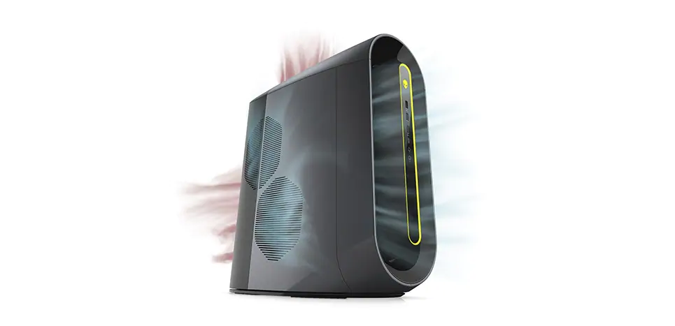 Inovativní proudění: Další zvýšení grafického výkonu pramení z dvojitého axiálního ventilátoru s kladným zadním přetlakovým vývodem – poprvé v novém počítači Alienware pro grafické karty. Kladný zadní přetlakový vývod umožňuje únik tepla ze speciálně umístěných výdechů, které pomáhají s průtokem vzduchu a řízením teploty. Tento nový přístup je vytvořen s ohledem na hráče.