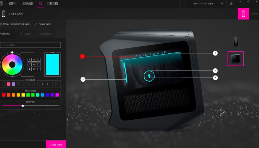 Nejnovější verze nástroje Alienware Command Center obsahuje automaticky vyladěné herní profily, řízení teploty, intuitivní možnosti přetaktování a snadno přizpůsobitelná nastavení osvětlení AlienFX. Software AlienFX podporuje až 16,8 milionu barev RGB a vy můžete ovládat a přiřazovat témata pro každou zónu osvětlení počítače Aurora. Všechny verze mají minimálně 3 zóny osvětlení a volitelná konfigurace Cryo-tech™ s průhlednými stěnami může mít až 8 zón.