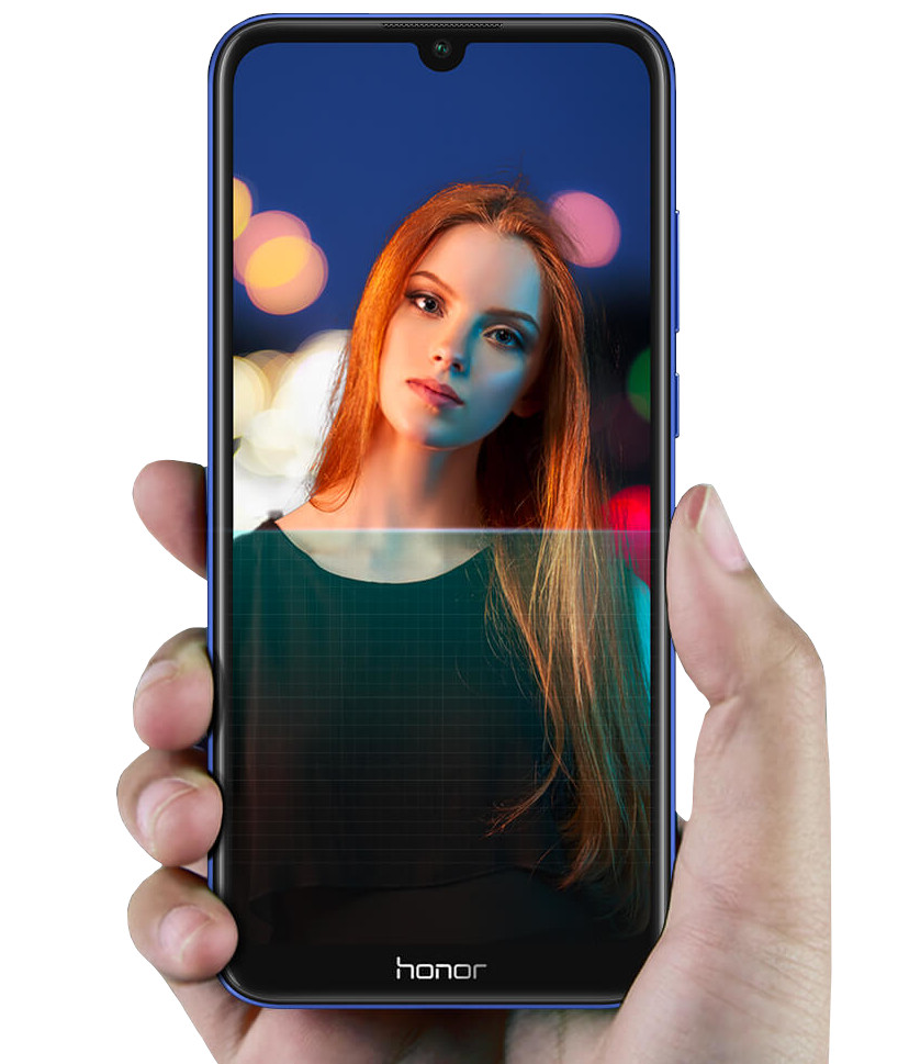 Displej 6,09" s výřezem Dewdrop, který je vlajkovou lodí modelu HONOR 8A , dosahuje poměru veliti displeje k veliti těla telefonu 87 % , a to díky ultra úzkému rámečku na třech jeho stranách. Displej prošel certifikací TÜV Rheinland zkoumající míru pohodlí pro oči při prohlížení. Snižuje totiž emise modrého světla, čímž omezuje poškození očí při dlouhém prohlížení. A ovládání pohybem prstu je navrženo tak, aby se telefon dal velmi jednoduše ovládat i jednou rukou.