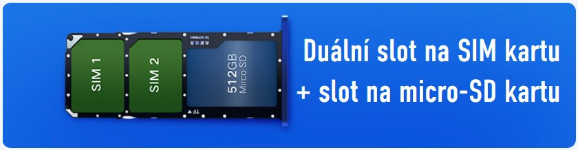 Paměťové karty: Duální slot na SIM kartu + slot na micro-SD kartu